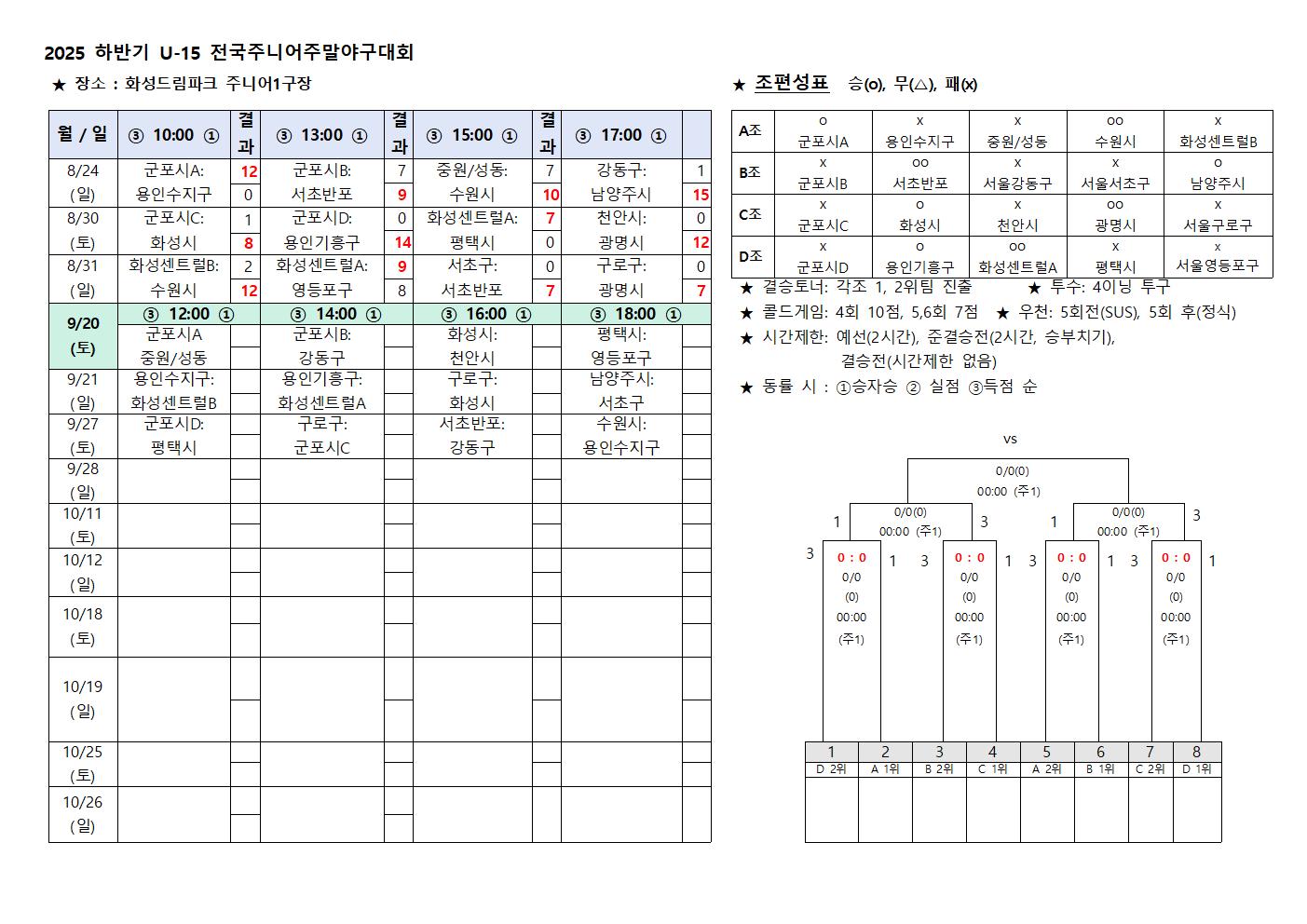 * 9월20일9토) 경기시간이 변경됨을 알려드립니다.